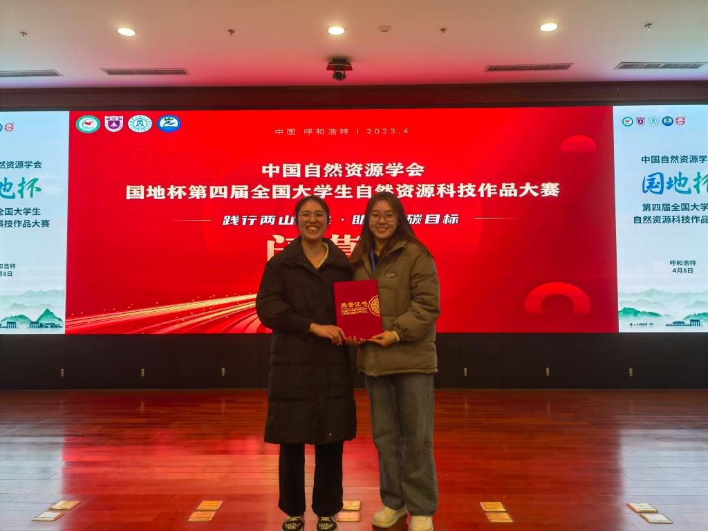 4月8日,在“国地杯”第四届全国大学生自然资源科技作品大赛决赛中,地理科学学院2020级人文地理与城乡规划专业学生唐明帆、曲柏旭、陈笑聪、李东徽(地理科学)撰写的论文《双碳目标下国土空间魅力特色区的识别与划定》获二等奖,朱伟鹏、毛玉银、夏仕林、王浩、张译元同学撰写的论文《双碳目标下资源型城市低碳转型研究》获优秀奖。