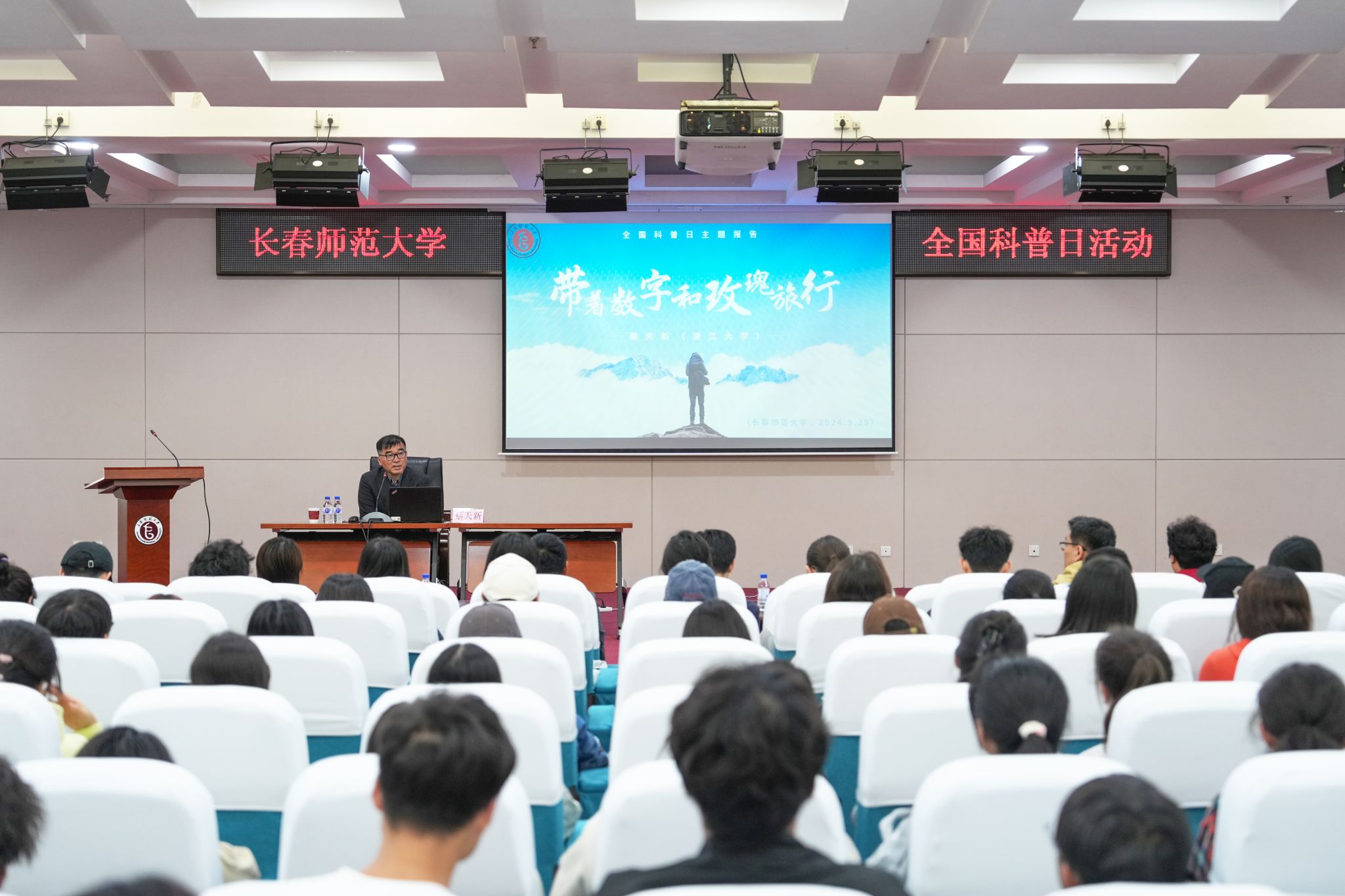 为积极响应2024年全国科普日“提升全民科学素质 协力建设科技强国”号召,9月25日,校科学技术协会邀请浙江大学求是特聘教授、博士生导师,全国科普工作先进工作者蔡天新教授作专题科普报告《带着数字和玫瑰旅行》。365官网副校长刘鹏飞主持报告会。